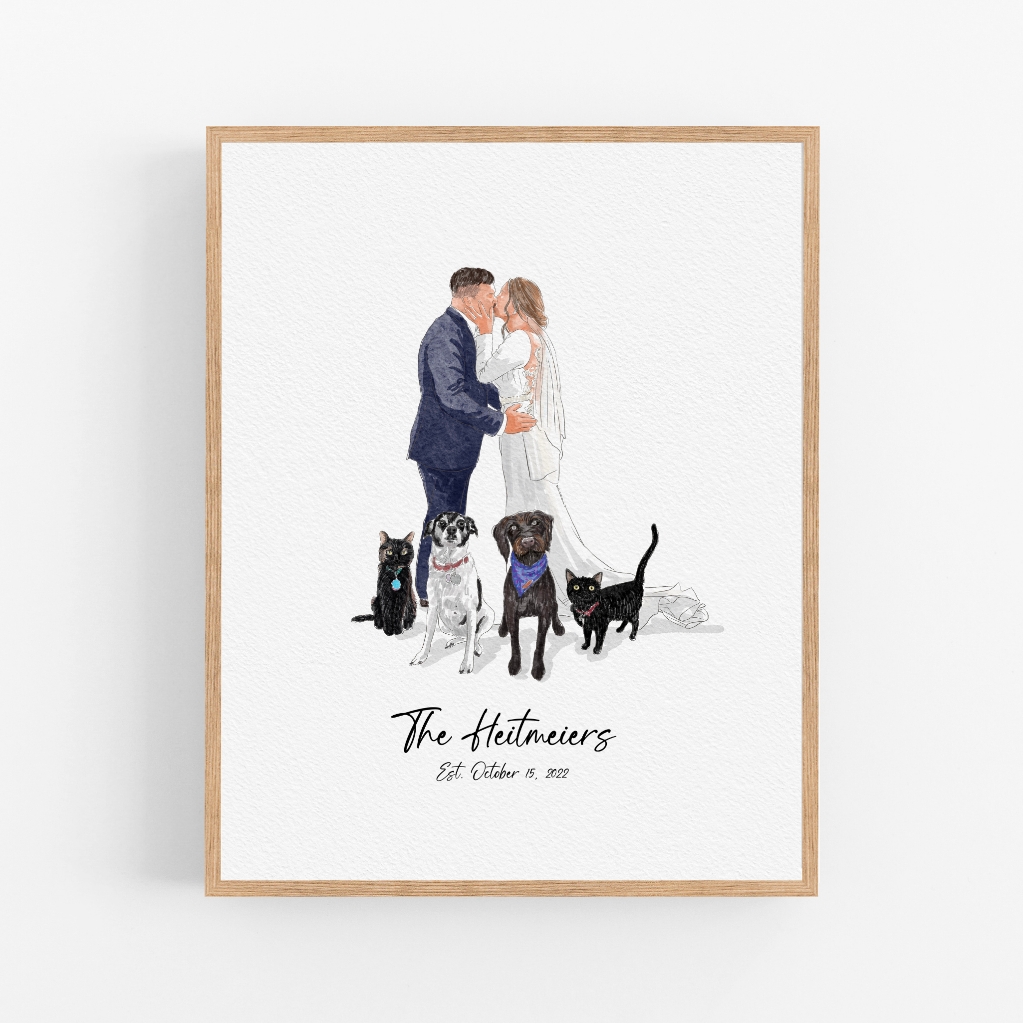 Custom Watercolour Family Portrait from Photo, Pen and Ink Drawing, Gifts For The Couple, Anniversary Gift, Proposal Gift