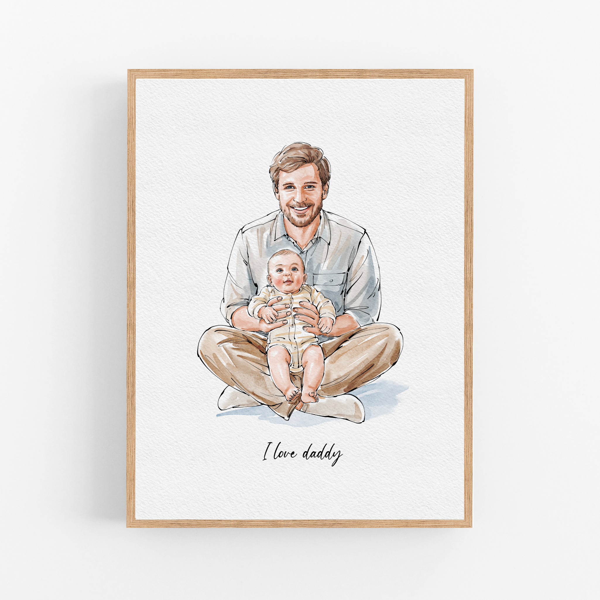 Fathers Day Gift from Wife, Custom Detailed Watercolor Portraits from Daughter, Personalized First Father's Day Gift from Photo