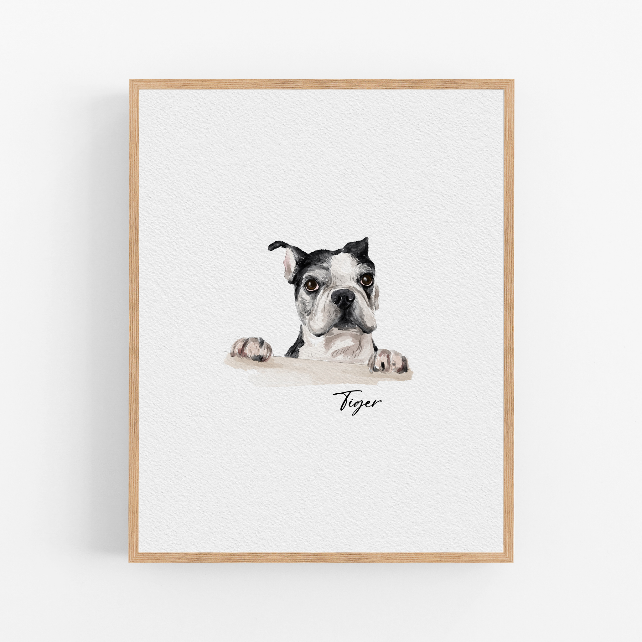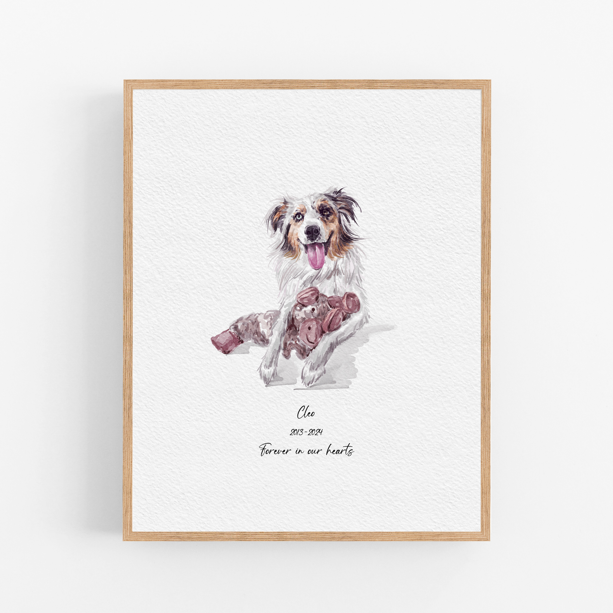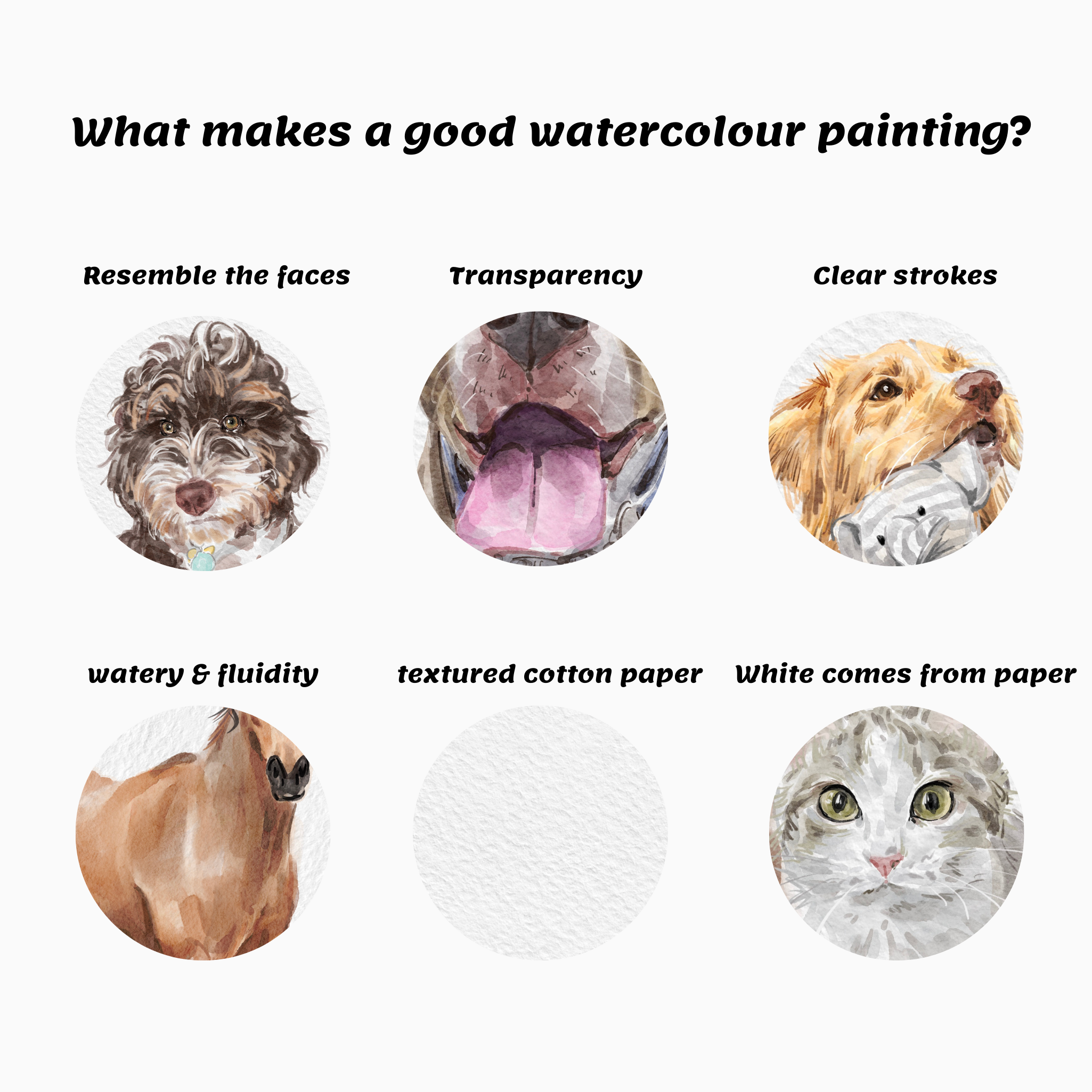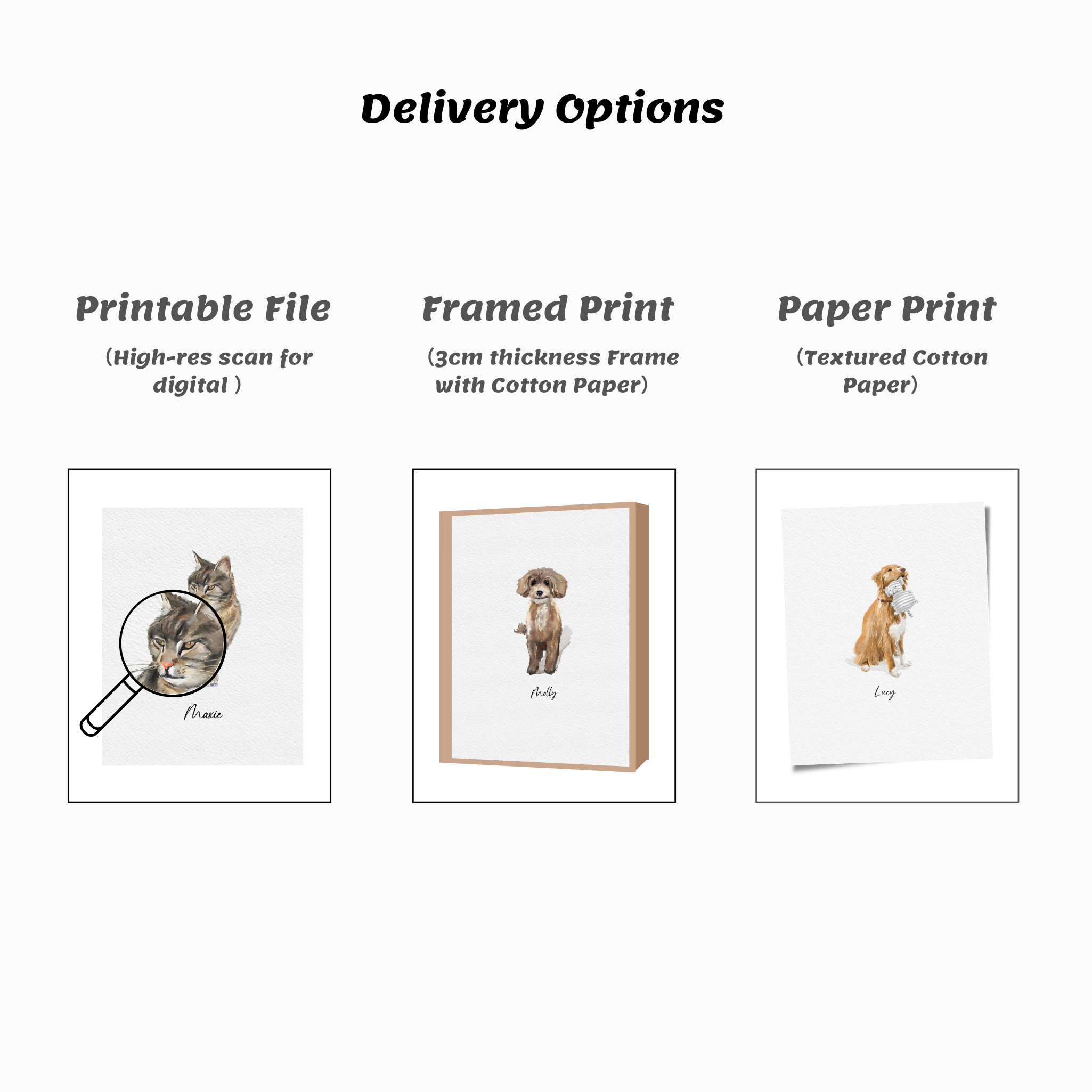 It's hand-drawn on paper from the sketch and scanned to provide my customer with printable files, printed on Special Cotton Paper which is the best way to keep the watercolour quality. Each stroke and detail is to bring out the intricate beauty of your pet, from their soft fur to their expressive eyes.