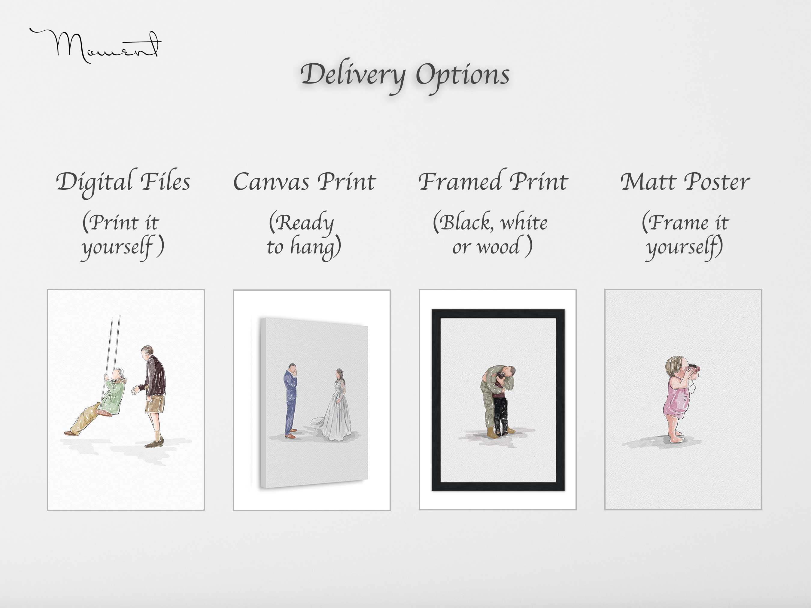 2. Select ‘Delivery Options’ and size: Printable File/ Framed print/ Matt Paper Print