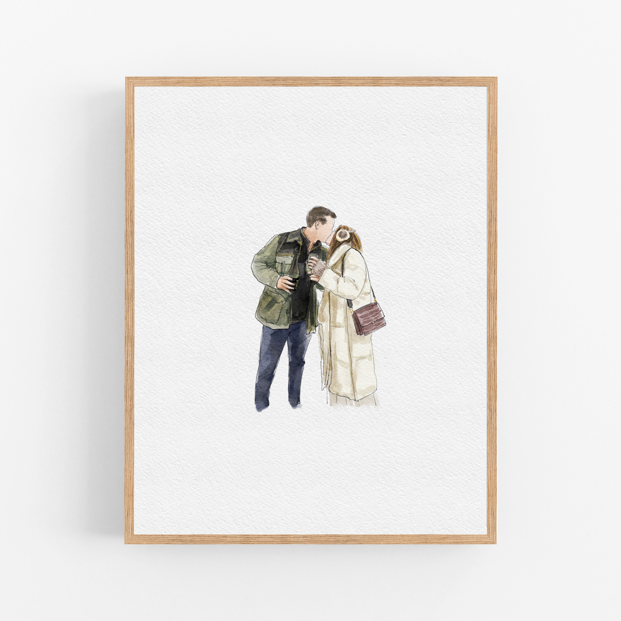 Please note this one is a minimalist faceless watercolor style without facial details. The best photo I recommend choosing are natural-looking moments, rather than smiling directly at the viewer - so looking down, to the side or from behind.