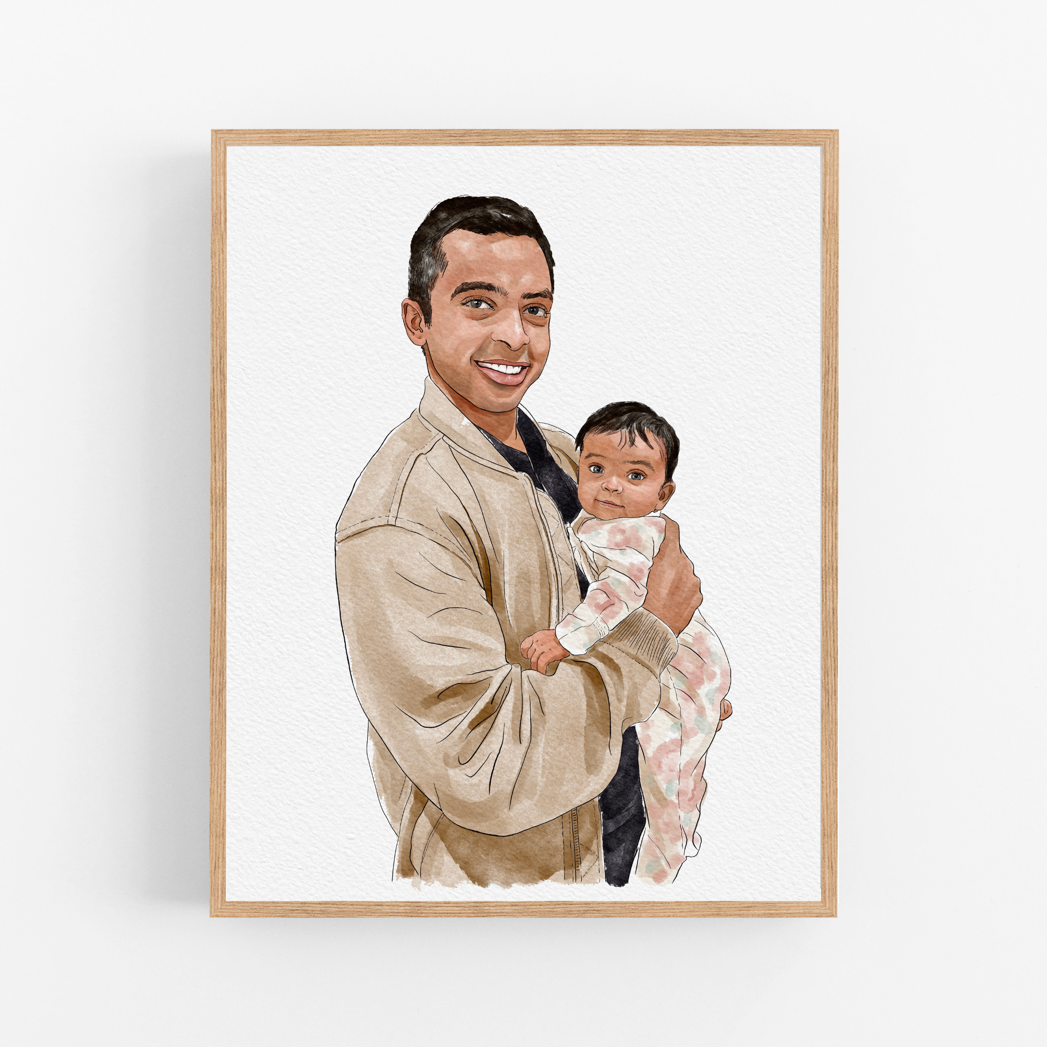 Watercolor Portraits redefine the boundaries of portraiture, offering captivating representations that draw viewers into the very essence of the subjects. It's hand-drawn on paper from the sketch and scanned to provide my customer with digital files, printed on Special Cotton Paper which is the best way to reflect the watercolour quality.